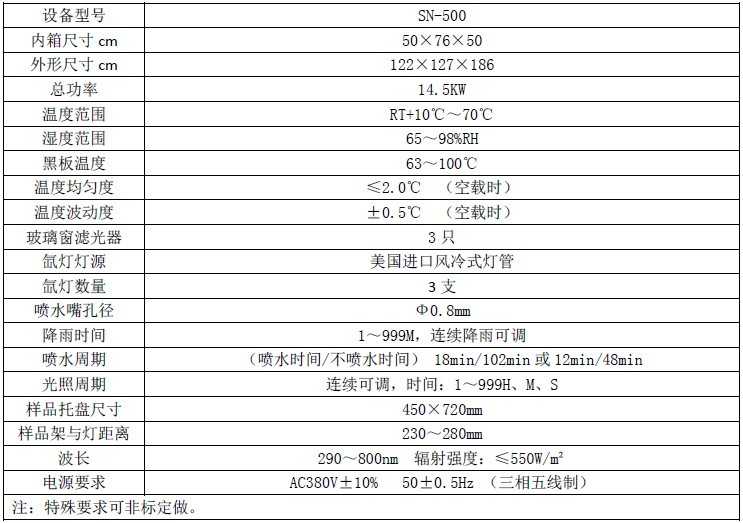 本產(chǎn)品嚴(yán)格按GB/T16422.2-99的技術(shù)參數(shù)設(shè)計(jì)制造.同時符合(GB/T1865-2009、GB/T9344-88、ASTMG155、GB/T16422.2、GB/T2423.24-1995、ISO10SB02/B04、SAEJ2527、SAEJ2412)等相關(guān)標(biāo)準(zhǔn)