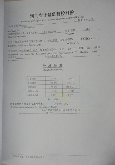 電熱恒溫鼓風(fēng)干燥箱校準(zhǔn)證書-河北計(jì)量院-長(zhǎng)城汽車