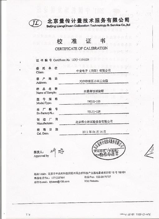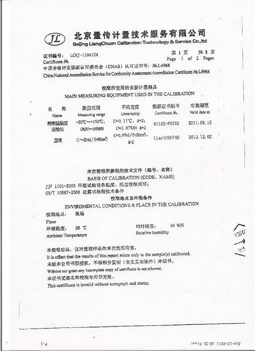 >>鹽霧腐蝕試驗(yàn)箱校準(zhǔn)證書-北京量傳計(jì)量-中安電子