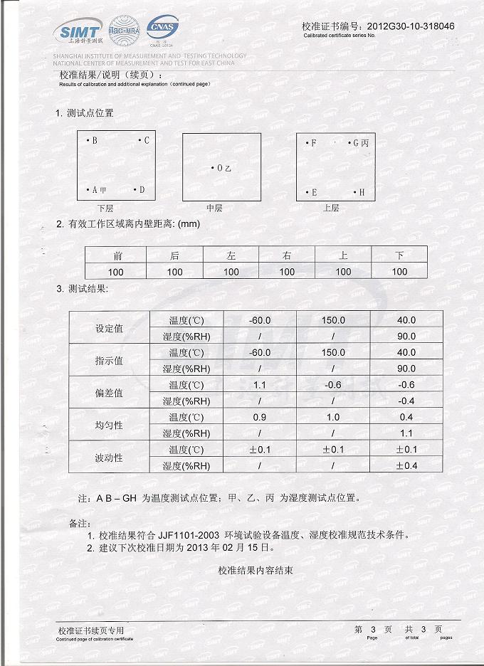 >>氣候試驗箱校準證書-上海計量院-中核控制2