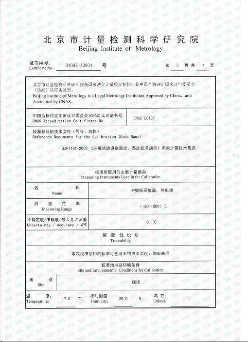 高低溫交變濕熱試驗(yàn)箱校準(zhǔn)證書-北京計(jì)量院-拉特激光